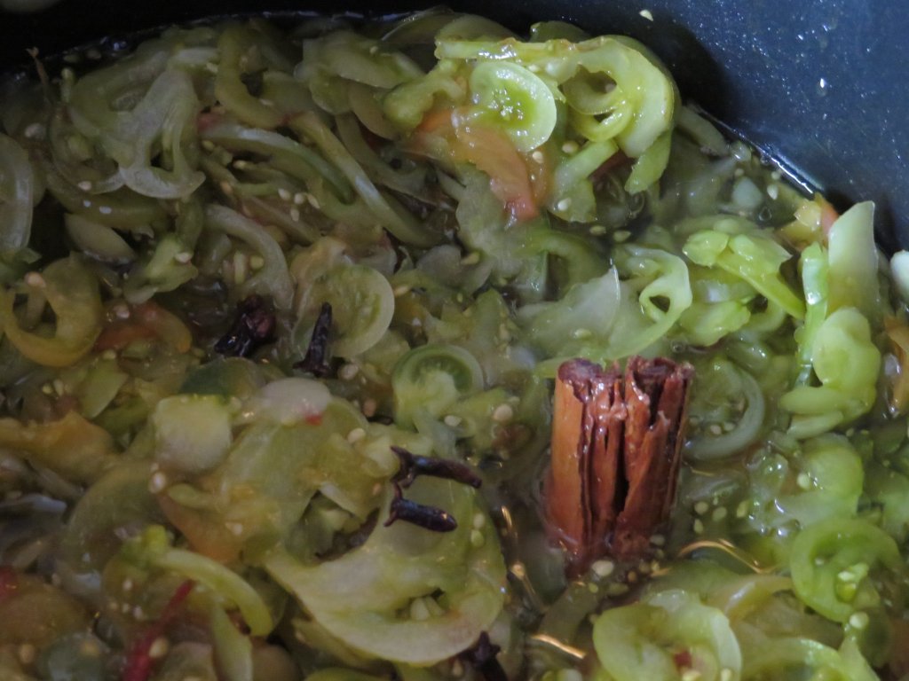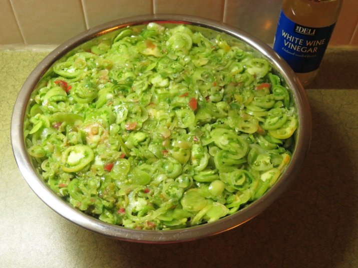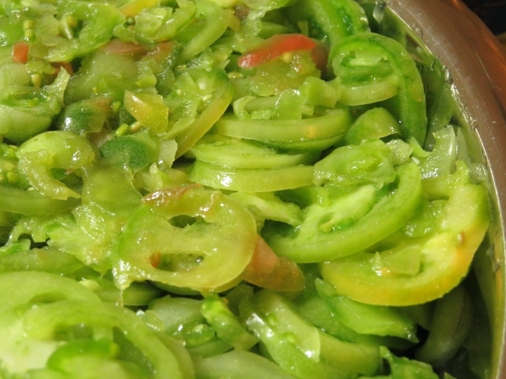 - Wash 3.5 kg green tomatoes and cut in fine slices