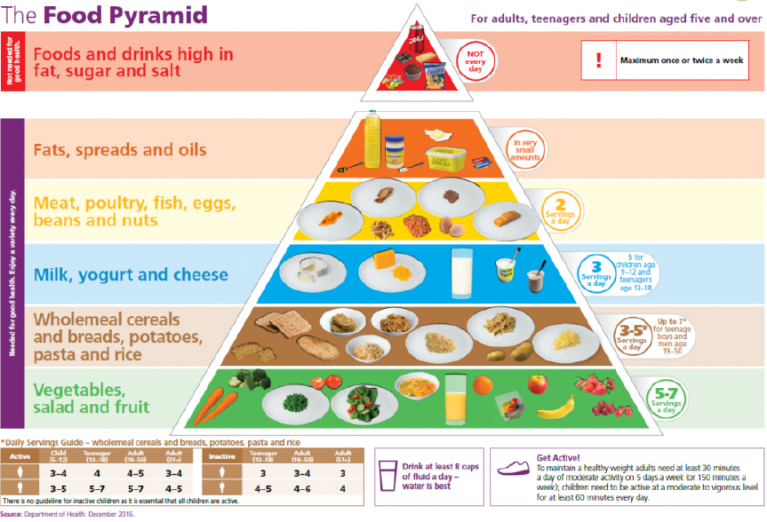 The food pyramid is a pyramid that can help all in terms of eating a healthy and nutritious diet. The way the pyramid works can be broken down and made easy for all. On the base of the pyramid, we have the food groups that should be consumed the most and, on the top, we have the food groups that should be consumed in moderation.