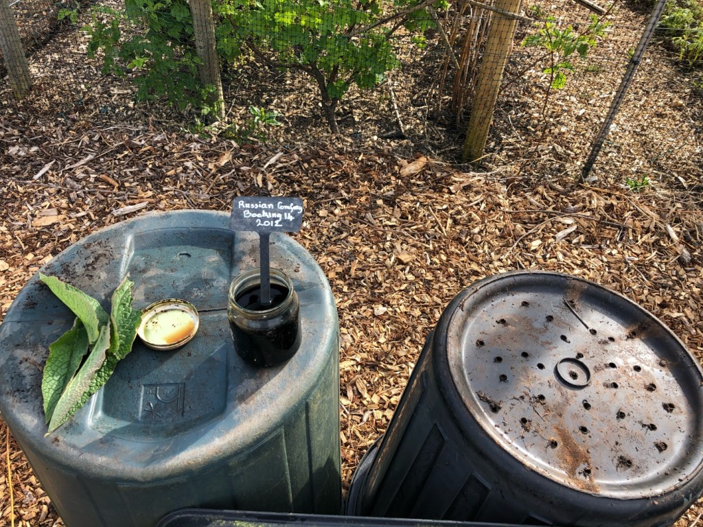 month there is a strong dark liquid comfrey feed in the bottom of the outer