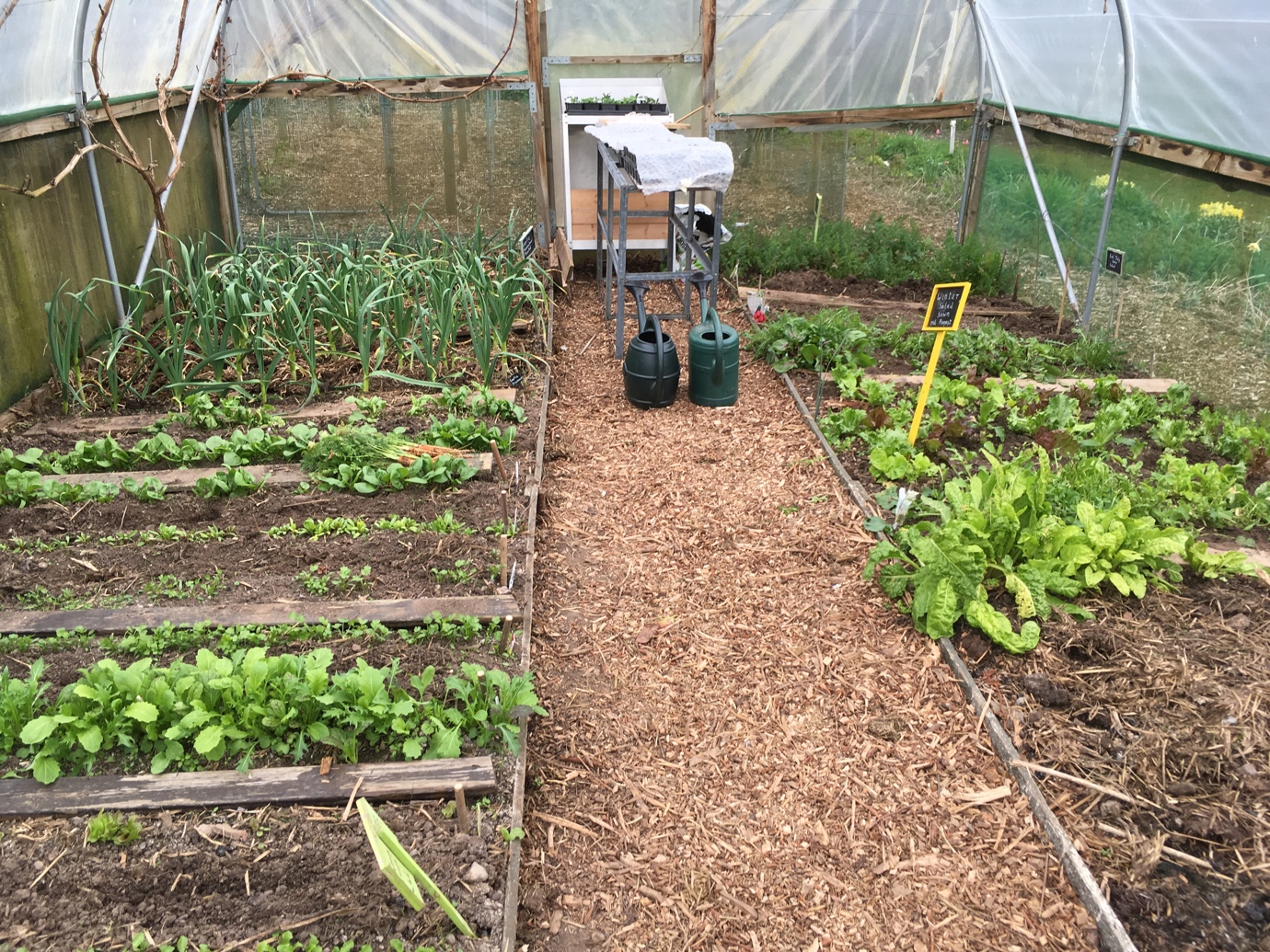 The communal poly tunnel allows us to grow salad and leafy vegetables all