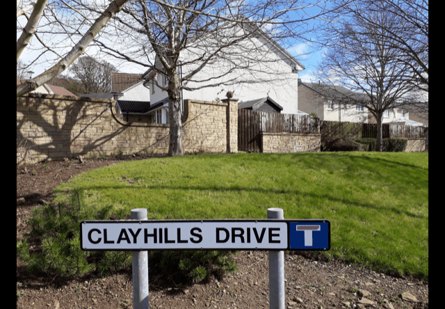 Halfway up Tom McDonald Avenue is Clayhills Drive.This road and houses were built in the early 2000s. The road, Clayhills Drive, is named after the family of the previous owners of our last neighbour Invergowrie House.
